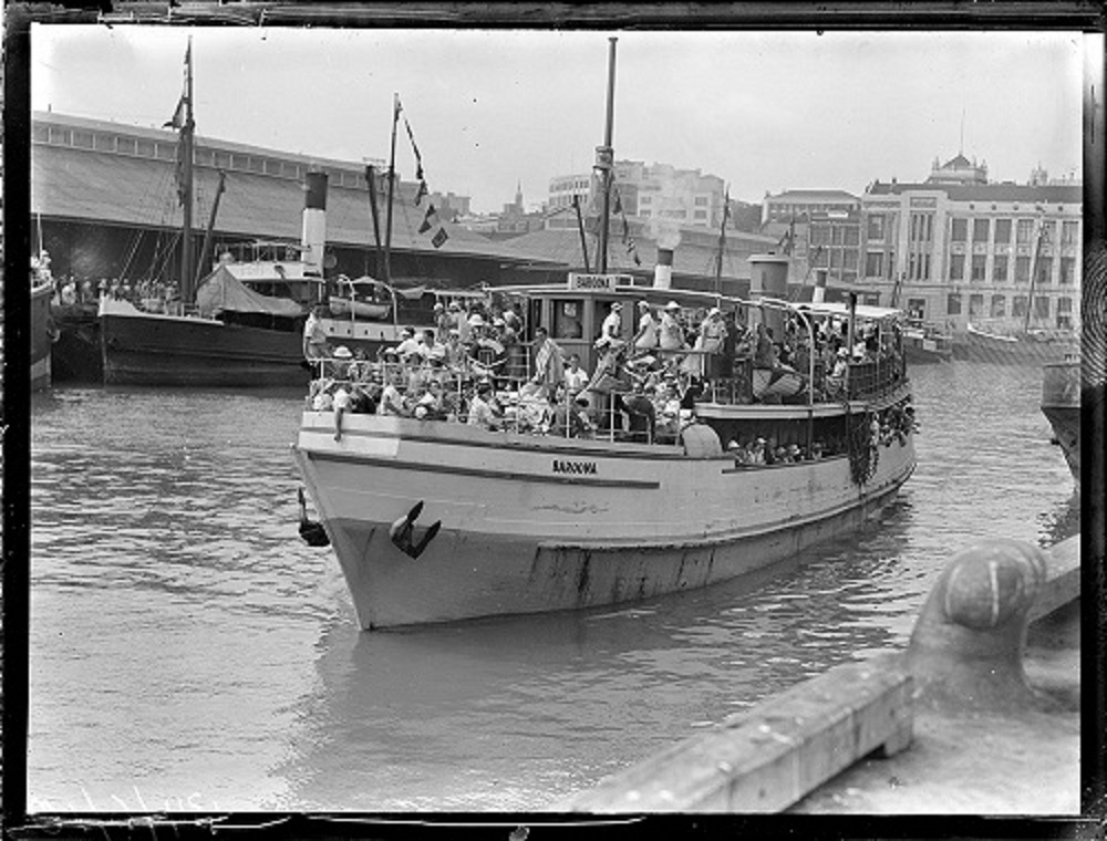 Built in 1904 she was transformed from a fishing trawler to a 2 deck ferry in 1933 when owned by George Niccol. She ran a service to Motuihe, Ostend and Surfdale. In 1965 she was sold to the North Shore Ferry company and was retired in 1989 when she was sold to the Baroona Trust. She became a Jolly Roger Restaurant at the side of the Great South Road in South Auckland before finally being demolished in 2009.